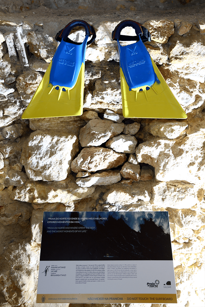 Kalani Lattanzi nasceu a 17 de maio de 1994 e é natural da Ilha de Maui, no Hawai. Cresceu nas ondas pesadas da praia de Itacoatiara, em Niterói. Pratica três modalidades: surf, bodyboard e bodysurf em ondas gigantes. Em 2015 foi o primeiro surfista a fazer Bodysurf em Jaws e no México desceu uma onda histórica de bodyboard, num swell gigante de Puerto Escondido. Em 2016 ganhou a categoria Resiliência do Red Chargers da Nazaré. Estes pés de pato foram os que kalani usou nas suas primeiras surfadas gigantes e simboliza todo o seu amor pela Nazaré. Um agradecimento especial à família Cardoso que sempre o recebeu nas suas temporadas em Portugal.